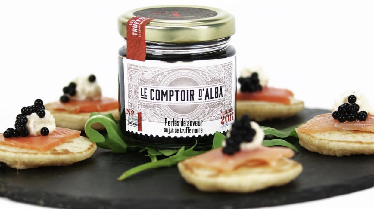 Perles de saveur au jus de truffe noire du comptoir d’alba :