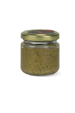 Basilic 33%, huile d’olive vierge extra, parmesan Reggiano AOP (LAIT, sel, caillette), truffe blanche d’été (tuber aestivum Vitt.) 3%, fromage percorino (LAIT, sel, caillette), pignon de pin 1%, fibre végétale, trehalose, correcteur d’acidité E330, sel, arôme